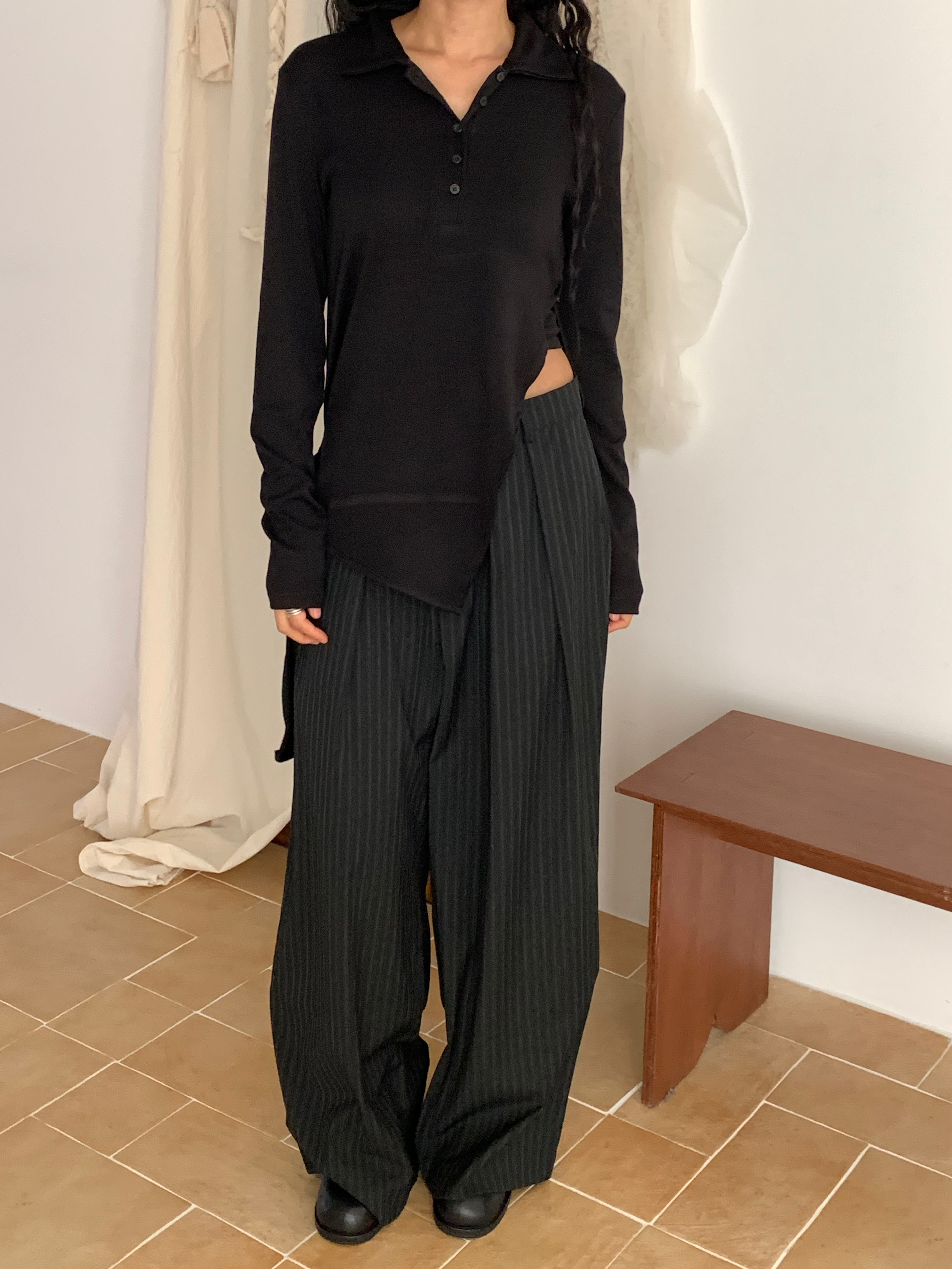 배드st슬랙스먹색, 검정Free size폴리72, 레이온25, 스판5