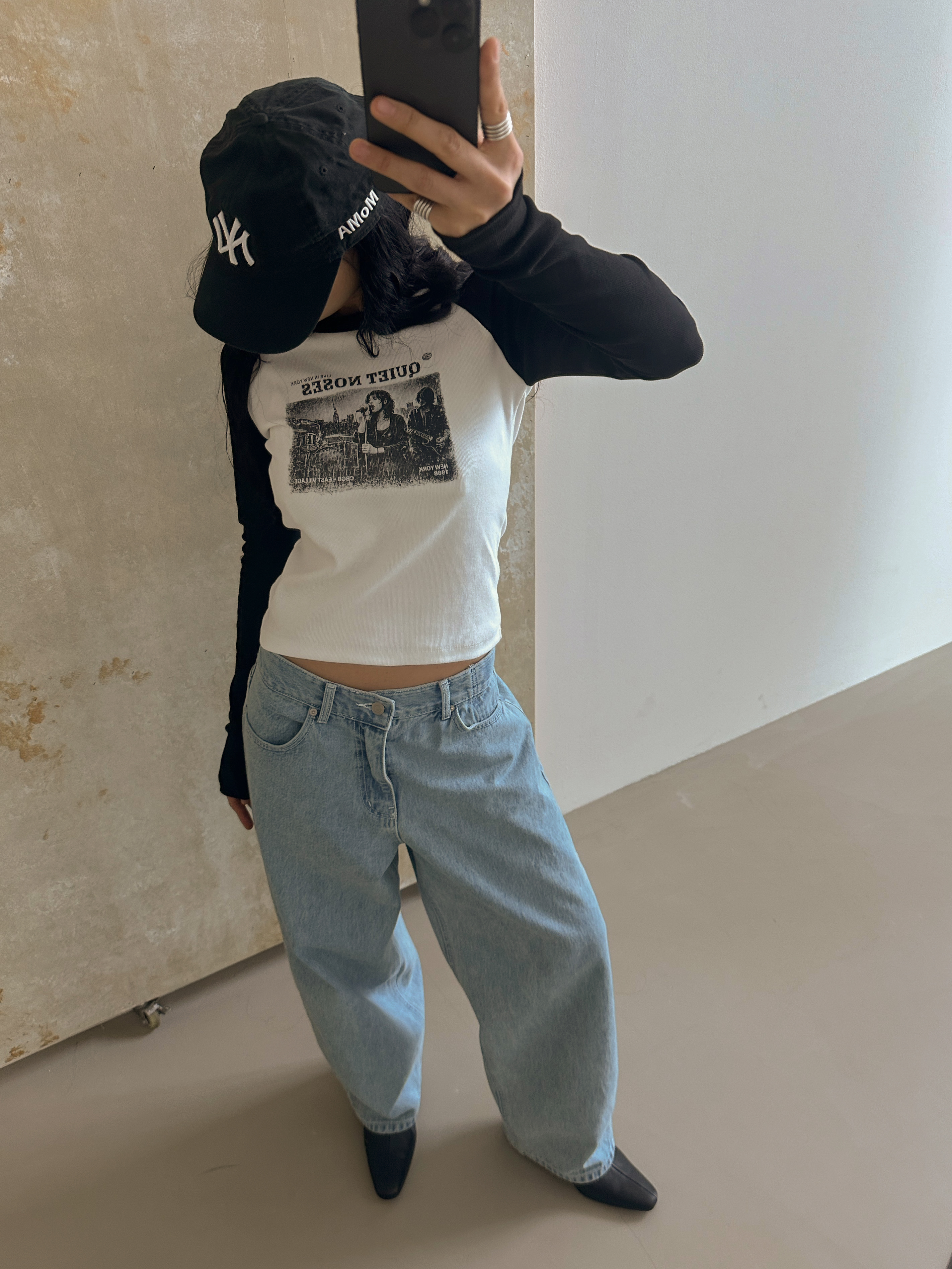 콰이어 T백멜란지 , 아이보리 , 회색 Free size코튼 95,스판5